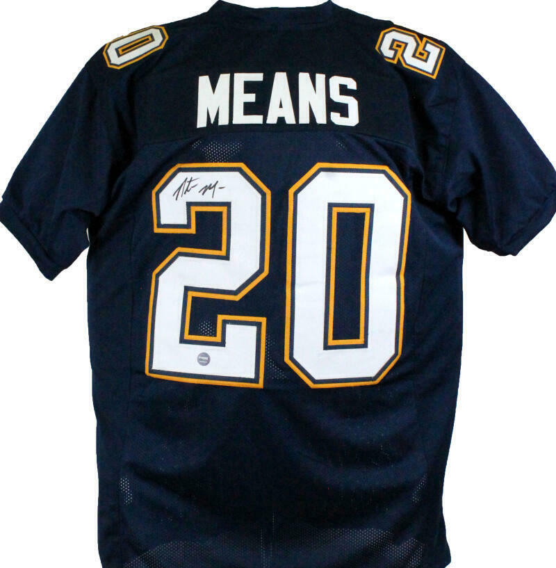 Natrone Means Autographed Blue Pro Style Jersey-Prova *Black THIS IS NOT AN NFL JERSEY. THIS HAS NO TAGS, NO LOGOS, NO EMBLEMS. This is a Natrone Means of the San Diego Chargers hand autographed custom made (non name brand) authentic style jersey with stitched letters and numbers.This item has a Prova Authentication, which comes with a numbered sticker hologram. You can view this item on the Beckett Authentication website and it shows when and where the item was signed. It was signed either at a public autograph appearance or a private signing. This is a stock photo of the item. Although you may not receive this exact item, the item you receive is virtually identical, brand new, and in great shape. Jersey size is XL.