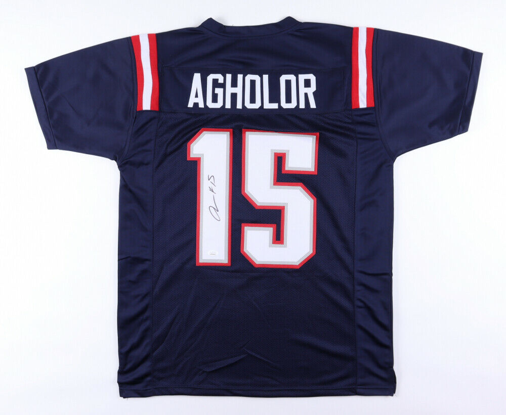 Custom on-field style jersey. Everything is sewn on, size XL. Hand-signed by Nelson Agholor.The lot / autograph(s) includes an official James Spence Authentication (JSA) hologram and matching COA for authenticity purposes. The signing of this item was witnessed by JSA. Authentication: JSA COA