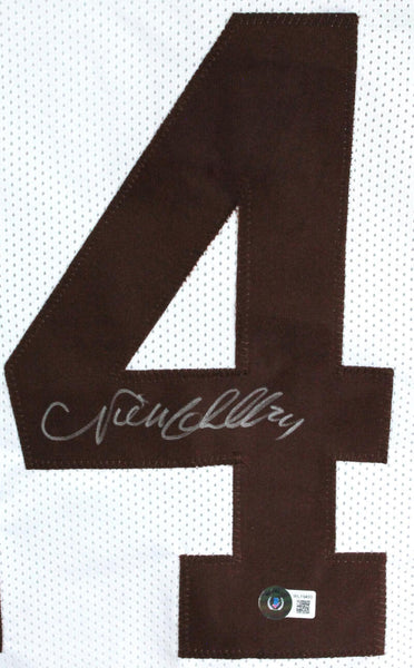 THIS IS NOT AN NFL JERSEY. THIS HAS NO TAGS, NO LOGOS, NO EMBLEMS. This is a Nick Chubb of Cleveland Browns hand autographed custom made (non name brand) authentic style (stitched letters and numbers) jersey. This item has a Beckett Authentication, which comes with a numbered hologram and a QR code for verification. You can view this item on the Beckett Authentication website and it shows when and where the item was signed. It was signed either at a public autograph appearance or a private signing. This is a stock photo of the item. Although you may not receive this exact item, the item you receive is virtually identical, brand new, and in great shape. Jersey size is XL. THIS IS NOT AN NFL JERSEY. THIS HAS NO TAGS, NO LOGOS, NO EMBLEMS. This is a Nick Chubb of Cleveland Browns hand autographed custom made (non name brand) authentic style (stitched letters and numbers) jersey. This item has a Beckett Authentication, which comes with a numbered hologram and a QR code for verification. You can view this item on the Beckett Authentication website and it shows when and where the item was signed. It was signed either at a public autograph appearance or a private signing. This is a stock photo of the item. Although you may not receive this exact item, the item you receive is virtually identical, brand new, and in great shape. Jersey size is XL.