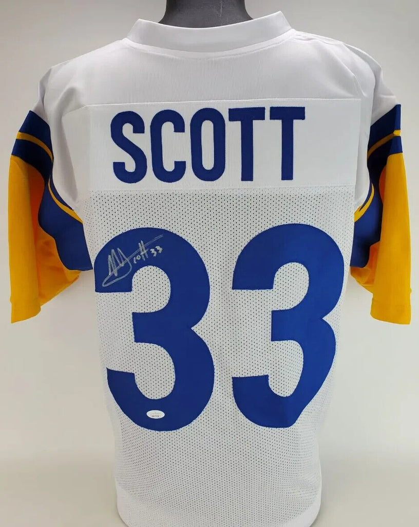 Custom on-field style jersey. Everything sewn on, size XL. Hand-signed in silver paint pen by Nick Scott. The autograph includes an official James Spence Authentication (JSA) hologram and matching COA for authenticity purposes. The signing of this item was witnessed by JSA.Authentication: JSA COA