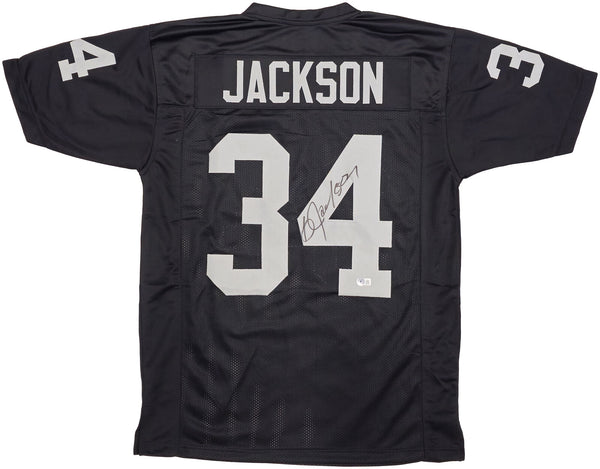 This is a Black Jersey that has been hand signed by Bo Jackson. This is a custom jersey with no name brand. The approximate size is XL. It has nice sewn in name and numbers. This item has been witnessed and certified authentic by Beckett Authentication (BAS) and comes with their tamper-proof witness sticker.