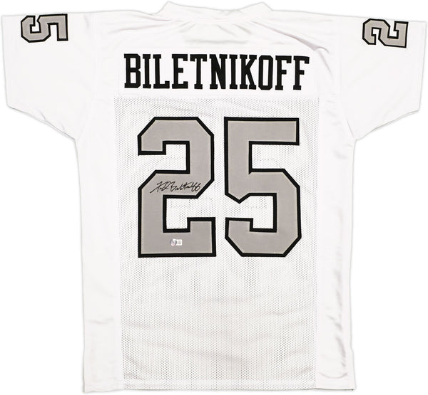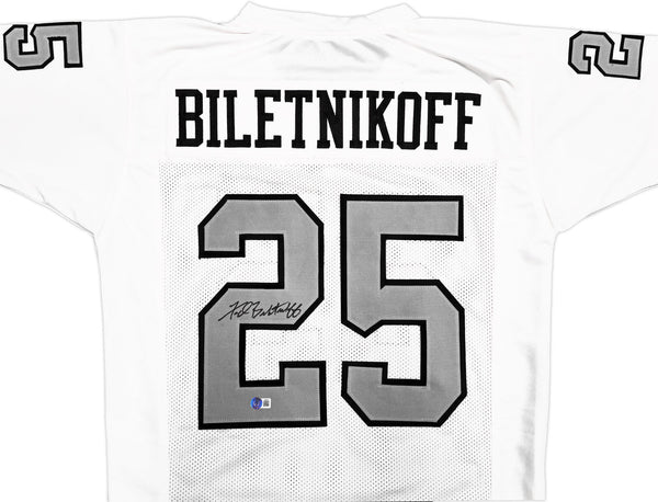 OAKLAND RAIDERS FRED BILETNIKOFF AUTOGRAPHED WHITE JERSEY BECKETT WITNESS 232609