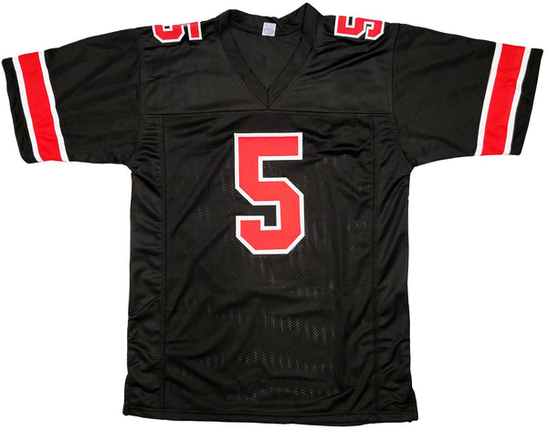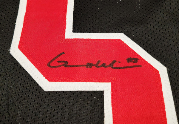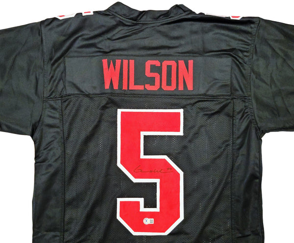 This is a Black Jersey that has been hand signed by Garrett Wilson. This is a custom jersey with no name brand. The approximate size is XL. It has nice sewn in name and numbers. This item has been certified authentic by Beckett Authentication (BAS) and comes with their tamper-proof sticker and matching certificate of authenticity.