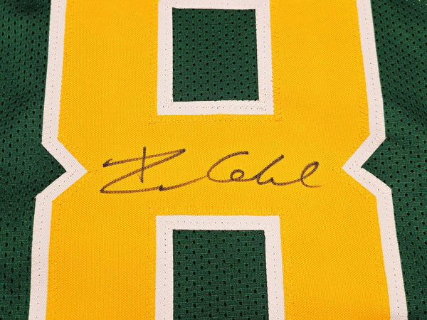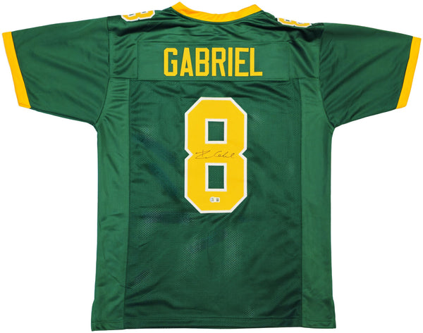 This is a Green Jersey that has been hand signed by Dillon Gabriel. This is a custom jersey with no name brand. The approximate size is XL. It has nice sewn in name and numbers. This item has been witnessed and certified authentic by Beckett Authentication (BAS) and comes with their tamper-proof witness hologram.