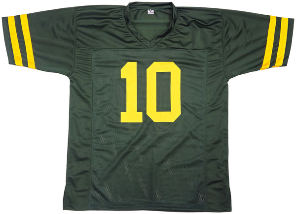 This is a Green Throwback Jersey that has been hand signed by Jordan Love. This is a custom jersey with no name brand. The approximate size is XL. It has nice sewn in name and numbers. This item has been witnessed and certified authentic by Beckett Authentication (BAS) and comes with their tamper-proof witness sticker.
