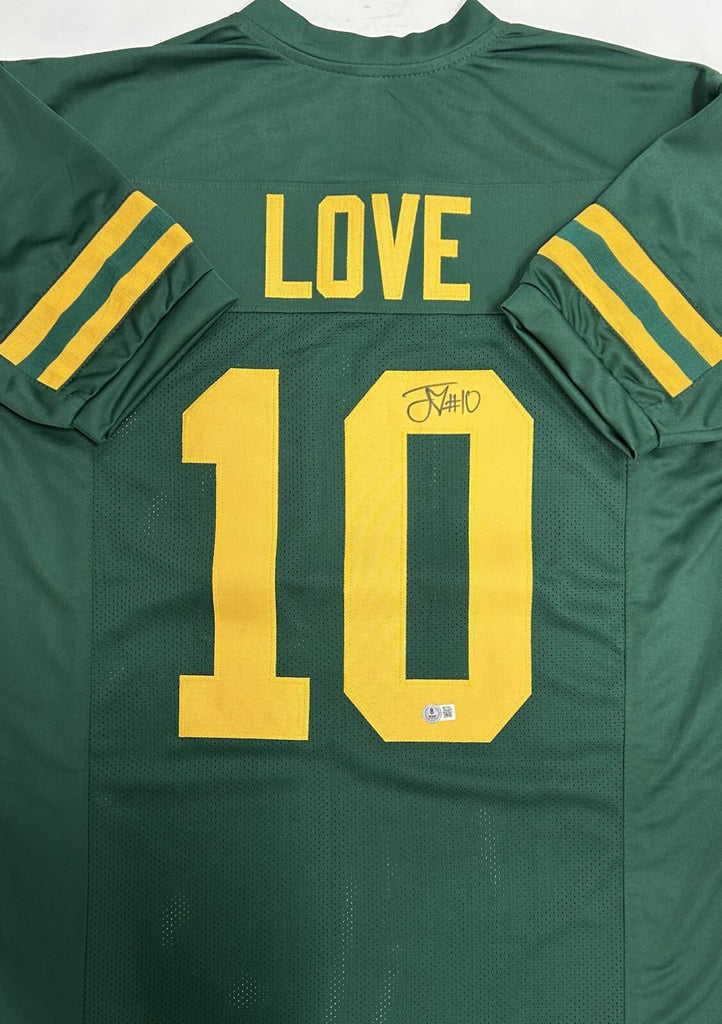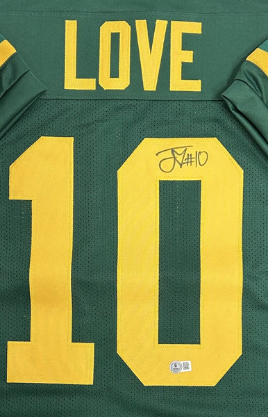 Custom Replica jersey hand signed by Green Bay Packers Quarterback JORDAN LOVE. The signature is in Black paint pen. This jersey was signed at a private signing with us and would make a great addition to any Packers collection! The jersey size is XL and all letters and numbers are sewn in. This autograph is guaranteed to be 100% authentic and will include a COA hologram from Beckett authentication.
