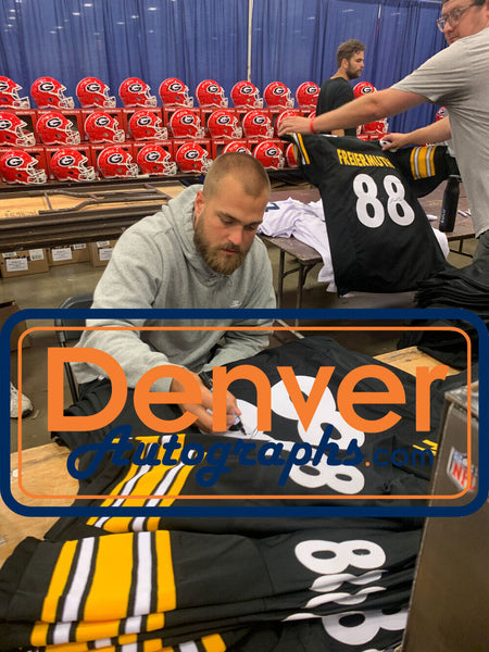 The number in the listing title is just an inventory sku for our records and is not the authentication number. The item pictured is a stock photo unless otherwise noted. This is a Pro Style Black size XL Jersey with sewn on numbers that was personally autographed by Pat Freiermuth. Includes a certificate of authenticity from Beckett Grading Services (BAS) and Denver Autographs.