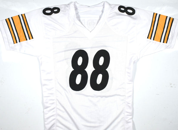 THIS IS NOT AN NFL JERSEY. THIS HAS NO TAGS, NO LOGOS, NO EMBLEMS. This is a Hand Autograph of Pat Freiermuth on a custom made (Non Name Brand) authentic style jersey with stitched letters and numbers. This item has a Beckett Witnessed Authentication, which comes with a Beckett #'ed hologram. You can view this item on the Beckett website and it shows when and where the item was signed. It was signed either at a public autograph appearance or a private signing. This is a stock photo of the item. Although you may not receive this exact item, the item you receive is virtually identical and brand new in great shape. Jersey size is XL. THIS IS NOT AN NFL JERSEY. THIS HAS NO TAGS, NO LOGOS, NO EMBLEMS. This is a Hand Autograph of Pat Freiermuth on a custom made (Non Name Brand) authentic style jersey with stitched letters and numbers. This item has a Beckett Witnessed Authentication, which comes with a Beckett #'ed hologram. You can view this item on the Beckett website and it shows when and where the item was signed. It was signed either at a public autograph appearance or a private signing. This is a stock photo of the item. Although you may not receive this exact item, the item you receive is virtually identical and brand new in great shape. Jersey size is XL.