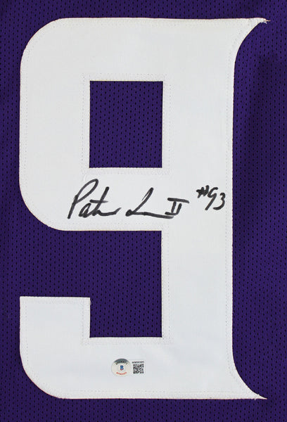 This Autographed Purple Pro Style Jersey has been Personally Signed by Patrick Jones of the Minnesota Vikings. This item is 100% Authentic to include a hologram by Beckett Authentication Services. This item will come with the new Beckett Authentication hologram that has a scannable QR code rather than the traditional COA. If you would like to have a COA, you are welcome to reach out to Beckett for a printed certification once you receive your item. This is a BAS Witnessed Protection Program item which means a Beckett Authentication Service representative was present when this item was being signed. This is a stock item. We conducted an autograph signing with Patrick Jones and we have several of these available. The one you will receive will be of equal quality to the one pictured. This item can be verified through BAS Witnessed. This is a X-Large sized, non-branded, custom-stitched Jersey.