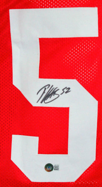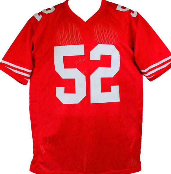 Patrick Willis Autographed Red Pro Style Jersey- Beckett W Hologram *Black THIS IS NOT AN NFL JERSEY. THIS HAS NO TAGS, NO LOGOS, NO EMBLEMS. This is a Patrick Willis of the San Francisco 49ers hand autographed custom made (Non Name Brand) authentic style (Stitched Letters and Numbers) jersey. This item has a Beckett Witnessed Authentication, which comes with a numbered hologram and a generic Certificate of Authenticity. You can view this item on the Beckett website. It was signed either at a public autograph appearance or a private signing. This is a stock photo of the item. Although you may not receive this exact item, the item you receive is virtually identical, brand new, and in great shape. Jersey size is XL.