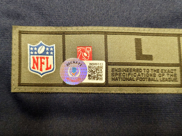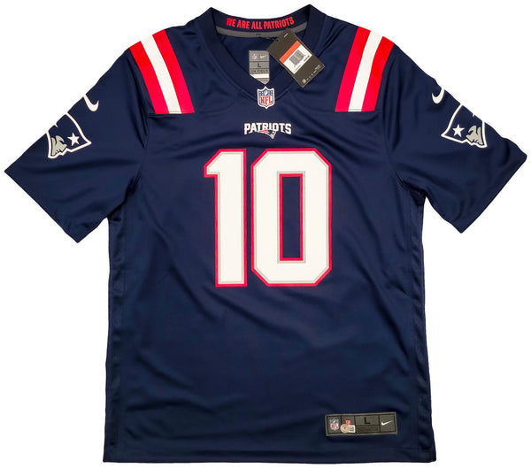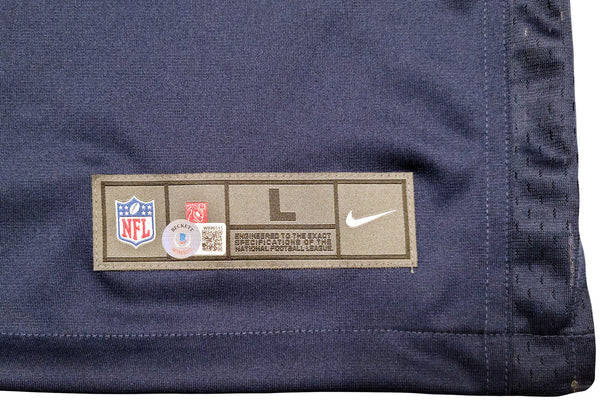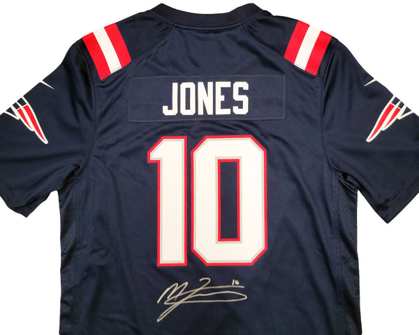 This is a Blue Nike New England Patriots Gameday Jersey that has been hand signed by Mac Jones. This jersey is Size L. This item has been certified authentic by Beckett Authentication (BAS) and comes with their tamper-proof QR Code sticker that can be verified on the Beckett-authentication.com.