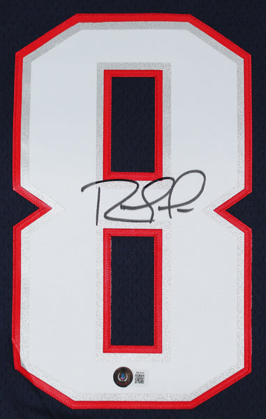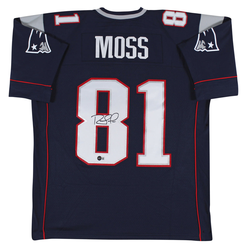 This Autographed Navy Blue Mitchell & Ness Jersey has been Personally Signed by Randy Moss of the New England Patriots. This item is 100% Authentic to include a hologram by Beckett Authentication Services. This item will come with an affixed Beckett Authentication Services (BAS) authentication sticker, which includes a scannable QR code to verify authenticity. Please note that Beckett no longer provides serial-numbered COA cards, and the attached BAS sticker will serve as the complete authentication for this item. This is a BAS Witnessed Protection Program item which means a Beckett Authentication Service representative was present when this item was being signed. We conducted an autograph signing with Randy Moss where multiples of the same item were signed. While the photographs are representative of this item, the size, placement and strength of the signature may vary. Each item is hand signed, therefore, each autograph is unique. This item can be verified through BAS Witnessed. This is a X-Large sized Jersey.