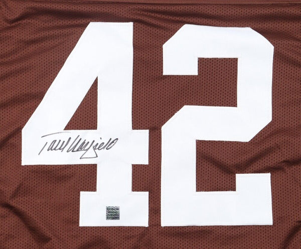 Custom on-field style jersey. Everything sewn on, size Adult XL. Hand-signed by Paul Warfield (Cleveland Browns, Miami Dolphins, HOF). The autograph includes an official Playball Ink hologram for authenticity purposes. The signing of this item was witnessed by Playball Ink.Authentication: Playball Ink Hologram