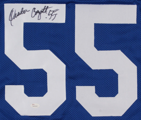 Custom on-field style jersey. Everything sewn on, size XL. Hand-signed in black felt-tip pen by Quentin Coryatt. The lot / autograph(s) includes an official James Spence Authentication (JSA) hologram and matching COA for authenticity purposes. The signing of this item was witnessed by JSA.Authentication: JSA COA