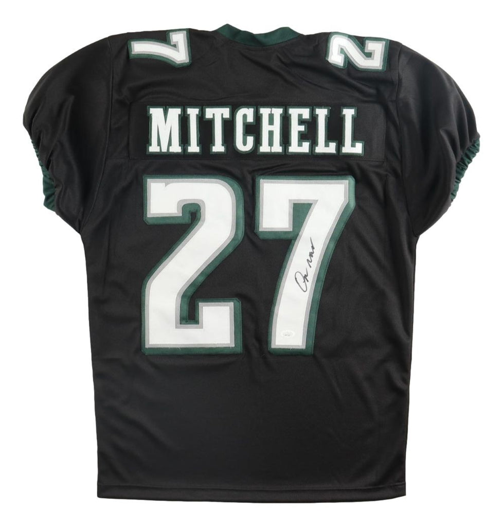Featured is a Quinyon Mitchell signed custom football jersey. This jersey has been hand signed by Mitchell and comes with the JSA hologram. This jersey features professionally sewn letters and numbers and is size XL. This jersey has no team tags or emblems and is intended as a sports collectible. This jersey would make a great addition to any sports memorabilia collection! SPECIFICATIONS Autographed By: Quinyon Mitchell Team: Philadelphia Eagles Sport: Football Authentication: James Spence Authentication (JSA)