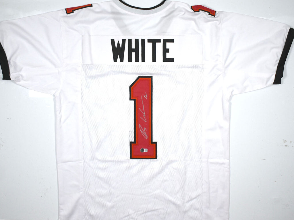 THIS IS NOT AN NFL JERSEY. THIS HAS NO TAGS, NO LOGOS, NO EMBLEMS. This is a hand autograph of Rachaad White on a Custom Made (non name brand) Authentic Style Jersey with stitched letters and numbers. This item has a Beckett Witness Authentication, which comes with a numbered hologram and a QR code for verification. You can view this item on the Beckett Authentication website. It was signed either at a public autograph appearance or a private signing. This is a stock photo of the item. Although you may not receive this exact item, the item you receive is virtually identical and brand new in great shape. Jersey size is XL. THIS IS NOT AN NFL JERSEY. THIS HAS NO TAGS, NO LOGOS, NO EMBLEMS. This is a hand autograph of Rachaad White on a Custom Made (non name brand) Authentic Style Jersey with stitched letters and numbers. This item has a Beckett Witness Authentication, which comes with a numbered hologram and a QR code for verification. You can view this item on the Beckett Authentication website. It was signed either at a public autograph appearance or a private signing. This is a stock photo of the item. Although you may not receive this exact item, the item you receive is virtually identical and brand new in great shape. Jersey size is XL.