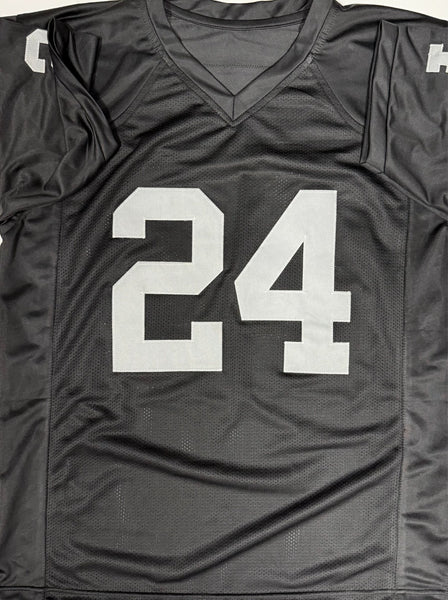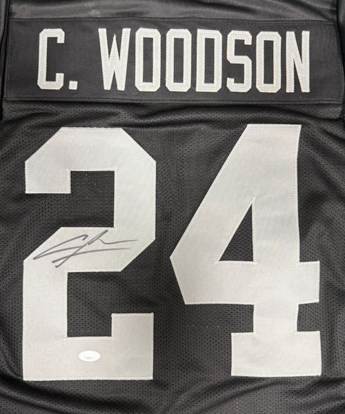 Custom Replica Jersey hand signed by Oakland Raiders Hall of Famer CHARLES WOODSON. The signature is in Black Sharpie. This jersey was signed at a private signing with us and would make a great addition to any Raiders collection! The jersey size is XL and all letters and numbers are sewn in. This autograph is guaranteed to be 100% authentic and will include a COA from JSA (James Spence Authentication).