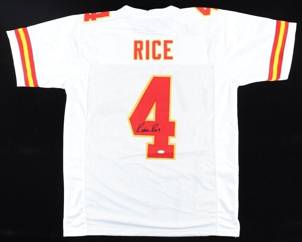 Custom on-field style jersey. Everything sewn on, size Adult XL. Hand-signed by Rashee Rice.The autograph(s) includes an official James Spence Authentication (JSA) hologram and matching COA for authenticity purposes. The signing of this item was witnessed by JSA.Authentication: JSA COA