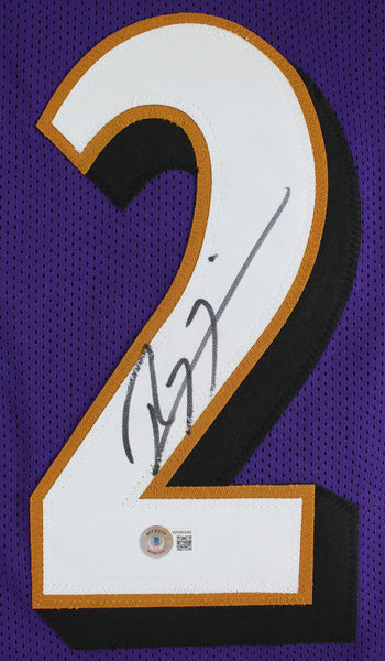 Ray Lewis Authentic Signed Purple Pro Style Stat Jersey BAS Witnessed