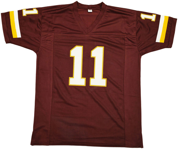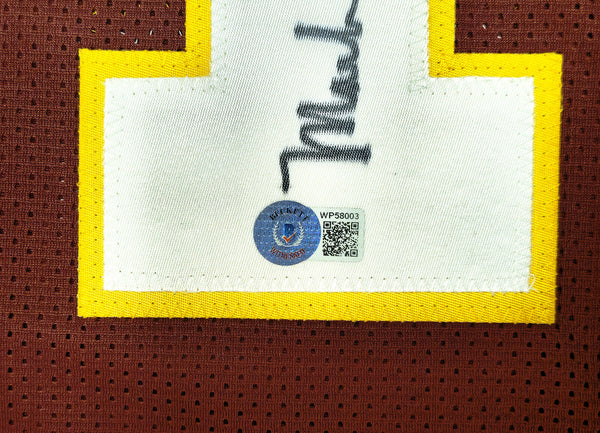 This is a Maroon Jersey that has been hand signed by Mark Rypien. This is a custom jersey with no name brand. The approximate size is XL. It has nice sewn in name and numbers. This item was inscribed "SB XXVI MVP." This item has been witnessed and certified authentic by Beckett Authentication (BAS) and comes with their tamper-proof witness sticker.