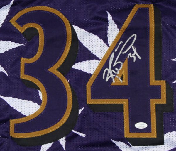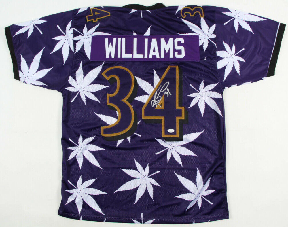 Custom on-field style jersey. Everything is sewn on, size XL. Hand-signed by Ricky Williams.Former NFL running back Ricky Williams is launching his own cannabis lifestyle brand, Highsman - a play on words with the Heisman award he received in 1998, after years advocating for the legalization and normalization of cannabis use.The athlete-focused, purpose-driven brand features cannabis products, apparel and accessories curated by Williams himself. The initial cannabis lineup features three strains: sativa, an indica and a hybrid. The company will also launch its own pre-rolls soon."We are flipping the script on how people view cannabis," Williams said in an exclusive interview.Throughout his professional football career, Williams faced two suspensions for marijuana. And he assures, cannabis helped him deal with the stress and injuries that come with the job - while never hindering his success.The lot / autograph(s) includes an official James Spence Authentication (JSA) hologram and matching COA for authenticity purposes. The signing of this item was witnessed by JSA.Authentication: JSA COA