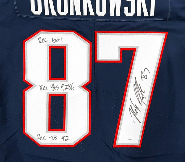 Rob Gronkowski Patriots Signed Career Stats Inscribed Nike Elite Jersey JSA