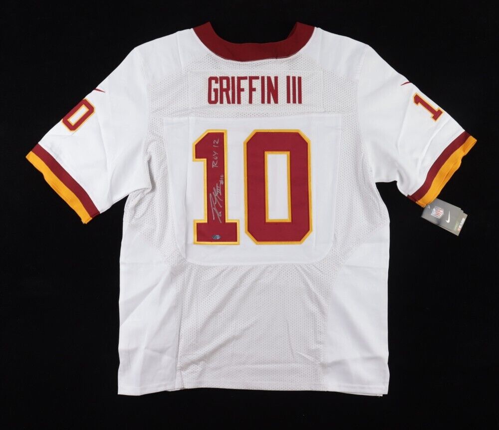 Nike on-field style jersey. Everything is printed on, size 48. Hand-signed and inscribed by Robert Griffin III.The lot / autograph(s) includes an official DK Sports hologram and matching COA for authenticity purposes.Authentication: DK Sports COA
