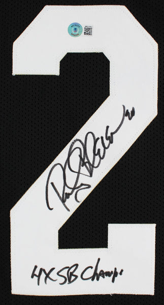 This Autographed Black Pro Style Jersey with the inscription of "4x SB Champ" has been Personally Signed by Rocky Bleier of the Pittsburgh Steelers. This item is 100% Authentic to include a hologram by Beckett Authentication Services. This item will come with the new Beckett Authentication hologram that has a scannable QR code rather than the traditional COA. If you would like to have a COA, you are welcome to reach out to Beckett for a printed certification once you receive your item. This is a BAS Witnessed Protection Program item which means a Beckett Authentication Service representative was present when this item was being signed. We conducted an autograph signing with Rocky Bleier where multiples of the same item were signed. While the photographs are representative of this item, the size, placement and strength of the signature may vary. Each item is hand signed, therefore, each autograph is unique. This item can be verified through BAS Witnessed. This is a X-Large sized, non-branded, custom-stitched Jersey.