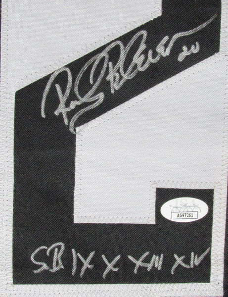 Rocky Bleier Autographed/Inscribed "SB IX X XIII XIV" Striped Custom Football Jersey Steelers. This jersey is authenticated by JSA and includes their Tamper-proof Sticker and Certificate of Authenticity.