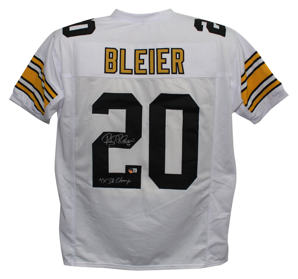 Rocky Bleier Autographed Pro Style White XL Jersey 4x Champs Beckett 39296 The number in the listing title is just an inventory sku for our records and is not the authentication number. The item pictured is a stock photo unless otherwise noted. This is a custom pro style white XL jersey with sewn on name and numbers that was personally autographed by Rocky Bleier with 4x SB Champs inscription. Includes a certificate of authenticity from Beckett Authentication Services (BAS) and Denver Autographs.