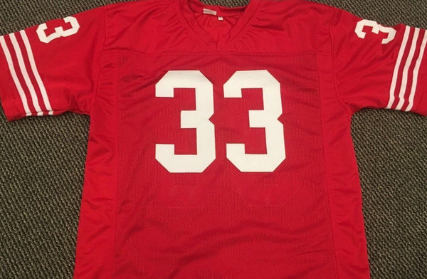 Custom on-field style jersey. Everything is sewn on, size XL Signed in black felt-tip pen by Roger Craig. Craig was the first running back to gain more than 1,000 yards rushing and 1,000 yards receiving in the same season in 1985. The autograph includes an official GTSM Player hologram for authenticity purposes. Authentication: GTSM Player Hologram Save on shipping when buying multiple items 2nd & 3rd jerseys ship FREE