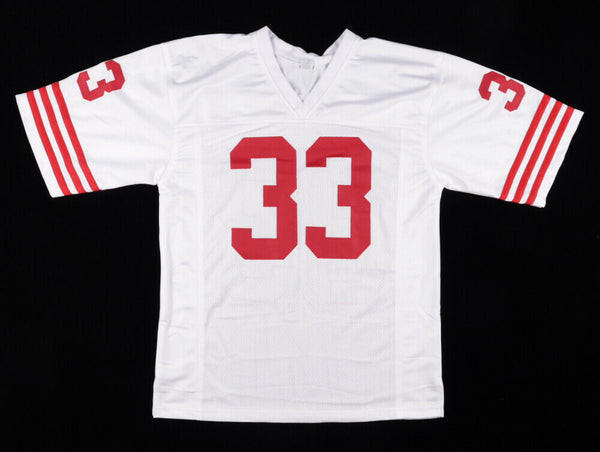 Custom on-field style jersey. Everything is sewn on, size XL. Hand-signed and inscribed by Roger Craig.The lot / autograph(s) includes an official James Spence Authentication (JSA) hologram and matching COA for authenticity purposes. The signing of this item was witnessed by JSA.Authentication: JSA COA
