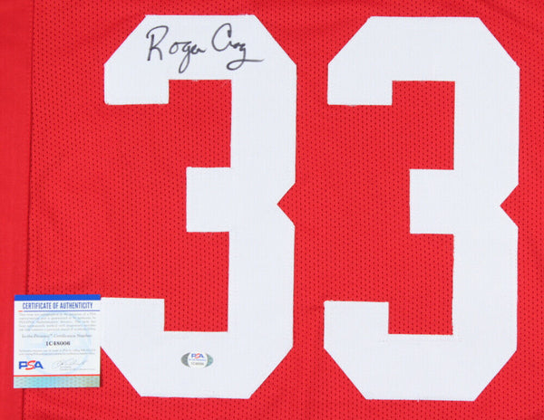 Custom on-field style jersey. Everything sewn on, size XL. Hand-signed by Roger Craig.The lot / autograph(s) includes an official PSA/DNA hologram and matching COA for authenticity purposes. The signing of this item was witnessed by PSA.Authentication: PSA COA
