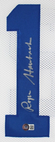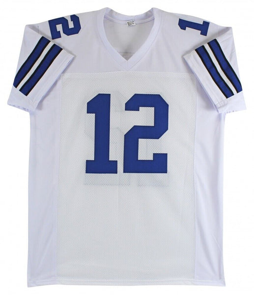 Custom on-field style jersey. Everything is sewn on, size XL. Hand-signed by Roger Staubach (HOF).The autograph includes an official Beckett Authentication Services serially numbered hologram for authenticity purposes. The signing of this item was witnessed by Beckett.Authentication: Beckett Hologram