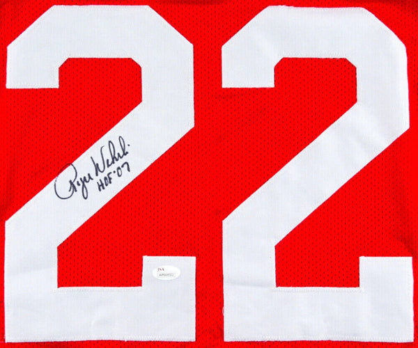 Custom on-field style jersey. Everything sewn on, size XL. Hand-signed and inscribed in black felt-tip pen by Roger Wehrli (HOF). The lot / autograph(s) includes an official James Spence Authentication (JSA) hologram for authenticity purposes. The signing of this item was witnessed by JSA.Authentication: JSA Hologram
