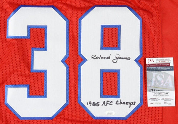 Custom on-field style jersey. Everything sewn on, size XL. Hand-signed and inscribed by Roland James.The autograph(s) includes an official James Spence Authentication (JSA) hologram and matching COA for authenticity purposes. The signing of this item was witnessed by JSA.Authentication: JSA COA