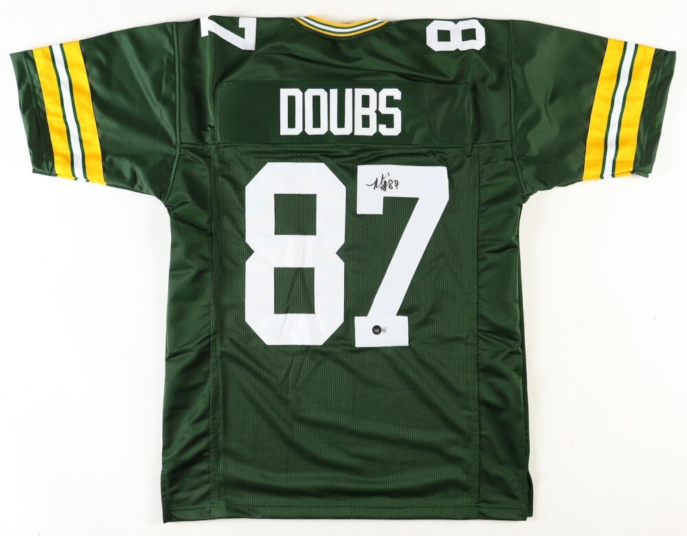 Custom on-field style jersey. Everything is sewn on, size XL. Hand-signed by Romeo Doubs.The autograph includes an official Beckett Authentication Services serially numbered hologram and QR Code Card for authenticity purposes. The signing of this item was witnessed by Beckett.Authentication: Beckett Hologram with QR Code CardCustom on-field style jerseys are a more affordable option for autograph seekers. These jerseys do not have any brand name or tags and are made in the Philippines. They feature stitched on names and numbers and are made to look very similar to the on-field jerseys that the players wear. These custom jerseys are very commonly used in the memorabilia industry.