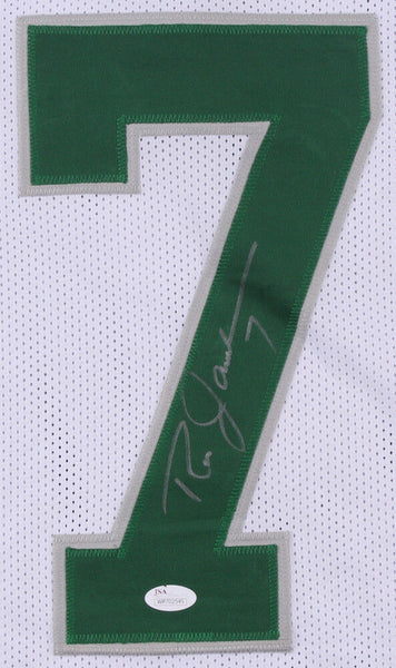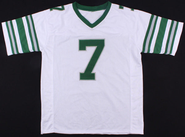 Custom on-field style jersey. Everything is sewn on, size XL. Hand-signed in silver paint pen by Ron Jaworski (Rams, Eagles). The autograph includes an official James Spence Authentication (JSA) hologram and matching COA for authenticity purposes. The signing of this item was witnessed by JSA.Authentication: JSA COA