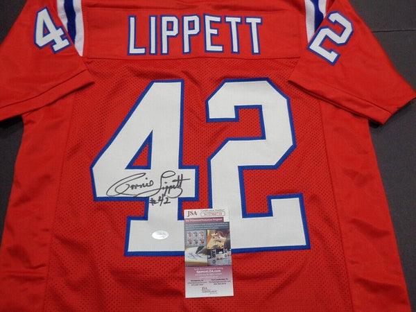 Custom on-field style jersey, everything is sewn on, size XL. The jersey has been hand-signed in black felt-tip pen by Ronnie Lippett. The lot / autograph(s) includes an official James Spence Authentication (JSA) hologram and matching COA for authenticity purposes. The signing of this item was witnessed by JSA.Authentication: JSA COA