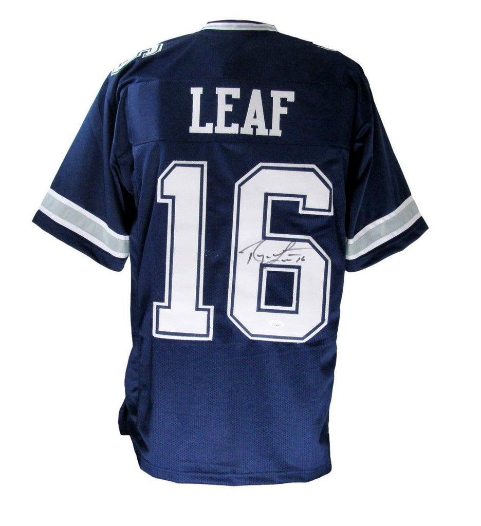Ryan Leaf Autographed Dallas Cowboys Blue Custom Football Jersey Size XL. This jersey is authenticated by JSA and includes their Tamper-proof Sticker and Certificate of Authenticity.