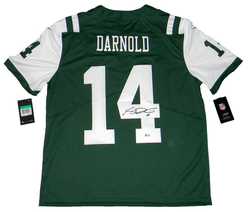 Sam Darnold, former quarterback for the New York Jets, has hand signed this Nike Limited jersey. Jersey is new with tags attached and all letters/numbers are sewn-on. This item comes with a certificate of authenticity (COA) from Beckett Authentication Services and was signed in the presence of one of their representatives. You will receive a serial-numbered COA along with a matching serial-numbered sticker on the jersey. The authenticity can be verified online by entering the serial number.Item pictured may not be the exact item you will receive. It will be similar quality, and we guarantee your satisfaction.