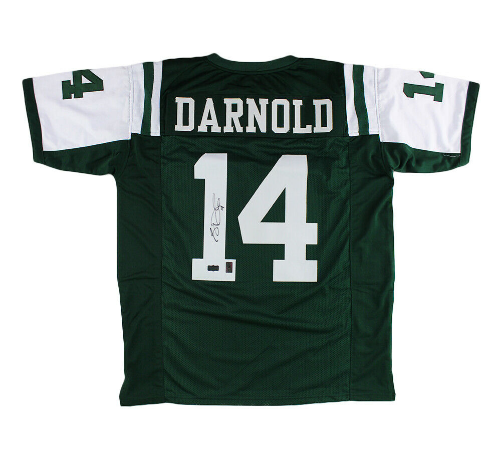 A New York Custom Green Jersey hand signed by Sam Darnold. The item and signature are in excellent condition. Sam is a quarterback for the New York Jets. He was selected third overall in the 2018 NFL Draft, is a Rose Bowl champion (2017), Archie Griffin Award winner (2016), and 2016 Pac-12 Offensive Freshman of the Year. AUTHENTICATION: The item is accompanied by a Certificate of Authenticity - Serial Numbered and Databased Hologram - Picture of Sam from the signing