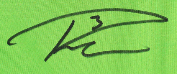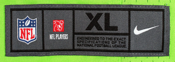 This Autographed Neon Green Nike Jersey has been Personally Signed by Russell Wilson of the Seattle Seahawks. This item is 100% Authentic to includes a numbered hologram by Fanatics. We conducted an autograph signing with Russell Wilson where multiples of the same item were signed. While the photographs are representative of this item, the size, placement and strength of the signature may vary. Each item is hand signed, therefore, each autograph is unique. This item can be verified through Fanatics. This is a X-Large sized Jersey.