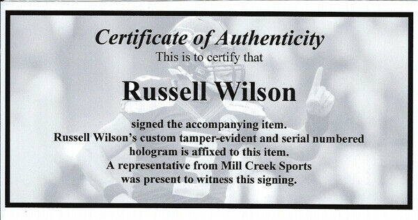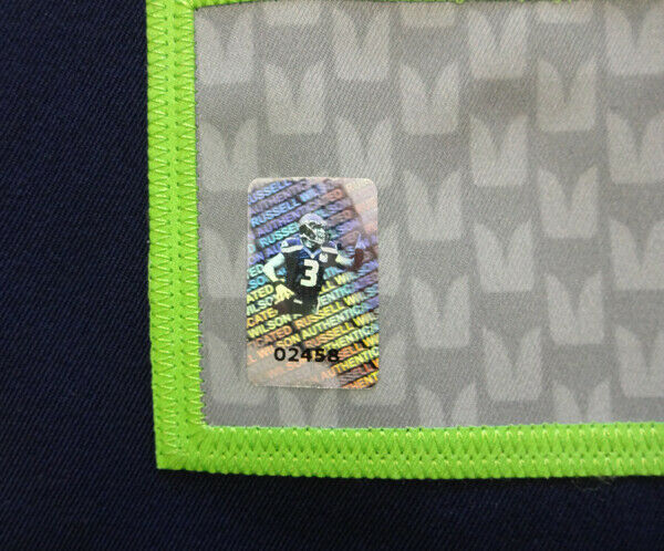 This is a Blue Nike Elite Seattle Seahawks Jersey that has been hand signed by Russell Wilson. This one is size 52. This item has the official tamper-proof Russell Wilson serial numbered hologram and matching certificate of authenticity.