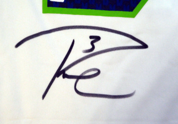 This is a White Nike Seattle Seahawks Jersey that has been hand signed by Russell Wilson. This one is size L. This item has the official tamper-proof Russell Wilson serial numbered hologram and matching certificate of authenticity.