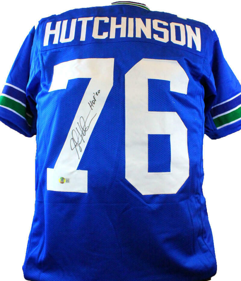Steve Hutchinson Autographed Blue Pro Style Jersey With HOF-Beckett W Hologram *black THIS IS NOT AN NFL JERSEY. THIS HAS NO TAGS, NO LOGOS, NO EMBLEMS. This is a hand autograph of Steve Hutchinson on a Custom Made (non name brand) Authentic Style Jersey with stitched letters and numbers. This item has a Beckett Authentication, which comes with a numbered hologram and a basic Beckett Certificate of Authenticity. You can view this item on the Beckett Authentication website. It was signed either at a public autograph appearance or a private signing. This is a stock photo of the item. Although you may not receive this exact item, the item you receive is virtually identical and brand new in great shape. Jersey size is XL.