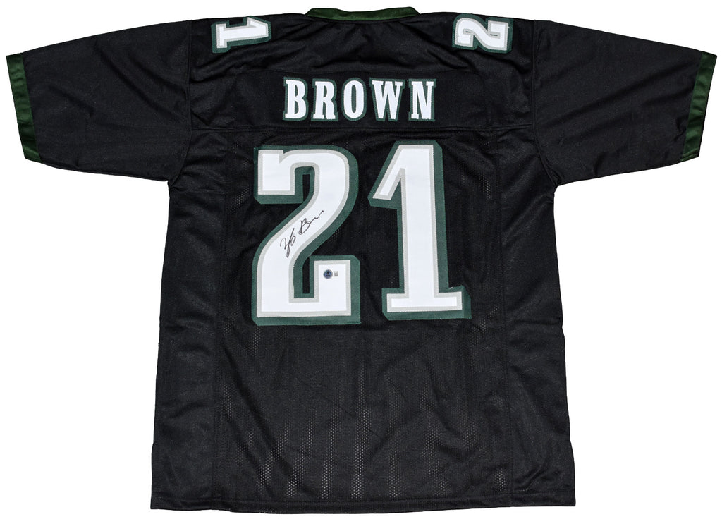 Sydney Brown, star safety for the Philadelphia Eagles, has hand signed this black custom jersey at a private signing. Jersey is size XL and all letters/numbers are sewn-on. This item is authenticated by Beckett Authentication Services, one of the best authenticators in the industry. Their tamper-evident hologram featuring a QR code and serial number is on the item. The authenticity can be verified online by entering the serial number or scanning the QR code.Item pictured may not be the exact item you will receive. It will be similar quality, and we guarantee your satisfaction.