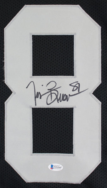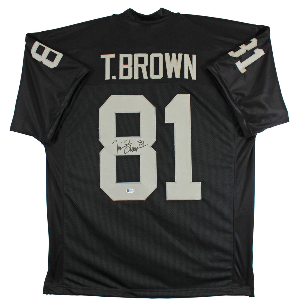 This Autographed Black Pro Style Jersey has been Personally Signed by Tim Brown of the Oakland Raiders. This item is 100% Authentic to include a hologram by Beckett Authentication Services. This item will come with the new Beckett Authentication hologram that has a scannable QR code rather than the traditional COA. If you would like to have a COA, you are welcome to reach out to Beckett for a printed certification once you receive your item. This is a BAS Witnessed Protection Program item which means a Beckett Authentication Service representative was present when this item was being signed. We have multiples of this same item. While the photographs are representative of this item, the size, placement and strength of the signature may vary. Each item is hand signed, therefore, each autograph is unique. This is a X-Large sized, non-branded, custom-stitched Jersey.