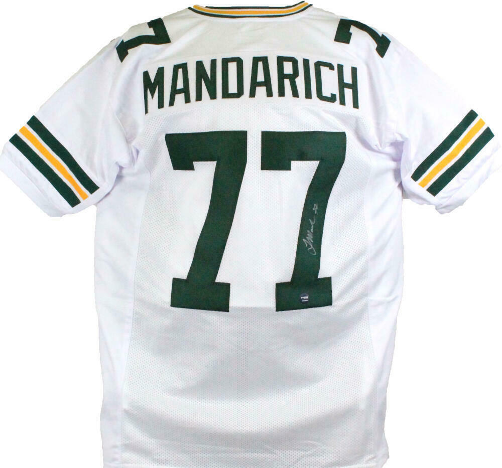 Tony Mandarich Autographed White Pro Style Jersey-Prova *Silver THIS IS NOT AN NFL JERSEY. THIS HAS NO TAGS, NO LOGOS, NO EMBLEMS. This is a Hand Autographed Jersey of Tony Mandarich on a custom made (Non Name Brand) authentic style (Stitched Letters and Numbers) jersey. This item has a Prova Authentication, which comes with a Prova #'ed Sticker. You can view this item on the Prova website, it shows when and where the item was signed. It was signed either at a public autograph appearance or a private signing. This is a stock photo of the item. Although you may not receive this exact item, the item you receive is virtually identical and brand new in great shape. Jersey size is XL.
