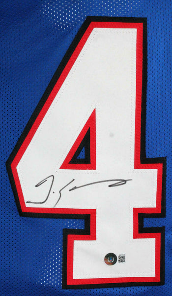Tremaine Edmunds Autographed Blue Pro Style Jersey- Beckett W Hologram *Black THIS IS NOT AN NFL JERSEY. THIS HAS NO TAGS, NO LOGOS, NO EMBLEMS. This is a Tremaine Edmunds of the Buffalo Bills hand autographed custom made (non name brand) authentic style jersey with stitched letters and numbers. This item has a Beckett WitnessedA Authentication, which comes with a numbered hologram and a genericA Beckett Certificate of Authenticity. You can view this item on the Beckett Authentication website. It was signed either at a public autograph appearance or a private signing. This is a stock photo of the item. Although you may not receive this exact item, the item you receive is virtually identical, brand new, and in great shape. Jersey size is XL.